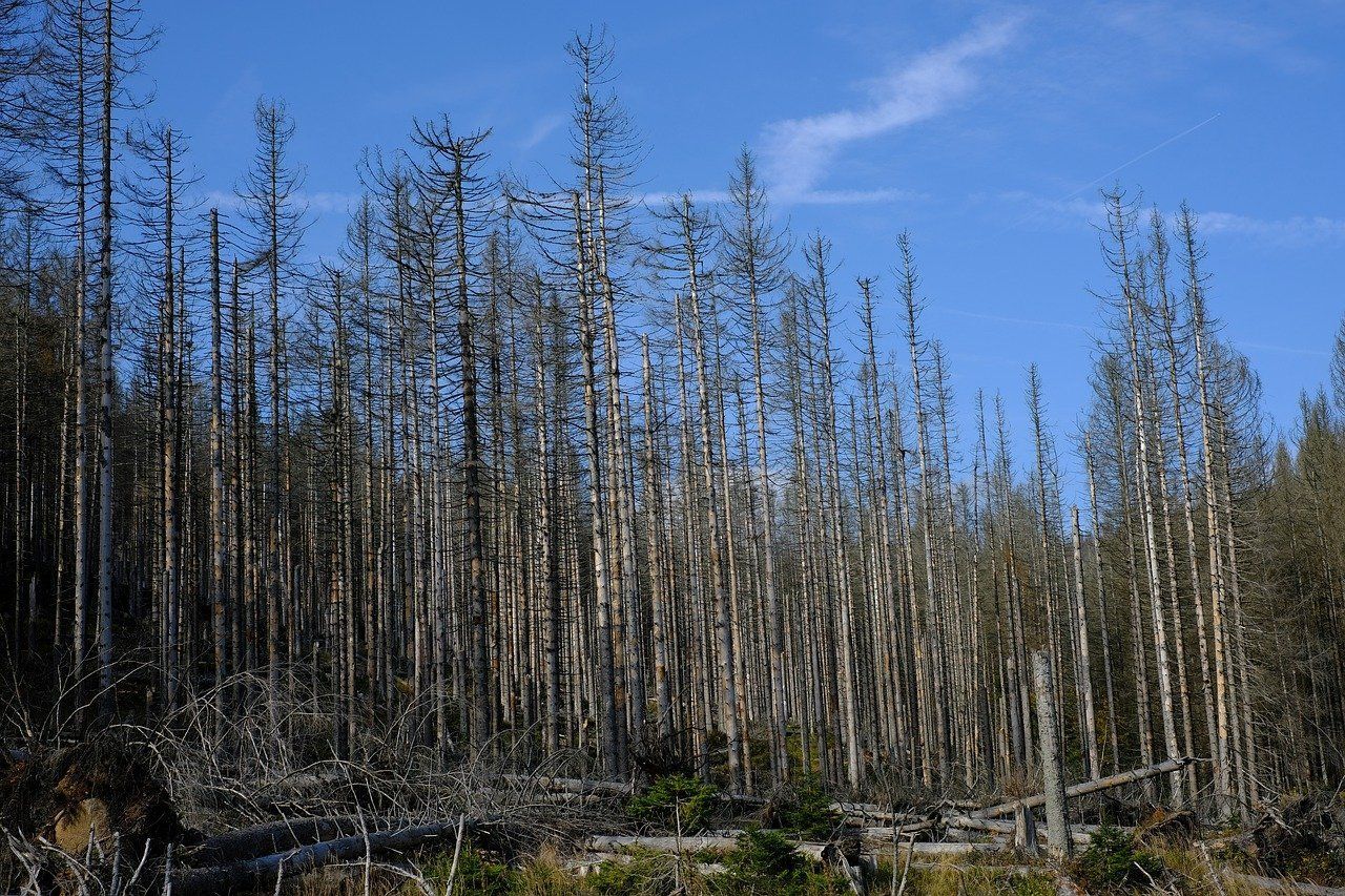 In the case of spruce, dryness promotes the proliferation of bark beetles. The resin production that healthy trees use to defend themselves against boring pests such as bark beetles comes to a standstill due to the lack of moisture.The trees are helpless against the bark beetles.