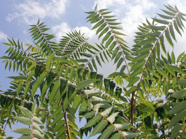 Der Götterbaum hat seine Wurzeln eigentlich in China. Er wurde gegen 1740 als Zierpflanze in Europa eingeführt. Das Problem des Götterbaumes, den man heutzutage viel in Städten wie Berlin findet, ist, dass er sehr schnell wächst und bis zu 30 m hoch wird. Er verbreitet sich rasant, vor allem über Wurzelausläufer und die gute Windverbreitung der Früchte. Ein weiterer Konkurrenzvorteil, den der Götterbaum hat, ist eine hohe Trockentoleranz. Wie bei der Acacia negra kann man hier das Phänomen der Allelopathie beobachten. Die Wurzeln des Götterbaums können das Pflanzengift Ailanthon ausscheiden, welches andere Pflanzen hemmt und unterdrückt. Und nicht nur andere Pflanzen können in seiner Gegenwart nicht gedeihen, auch viele Tiere meiden ihn wegen der Bitterstoffe. Bei Menschen können der Blütenstaub und der Kontakt zur Rinde und Blättern allergische Reaktionen und schlimmstenfalls eine Herzmuskelentzündung (Myokarditis) auslösen.